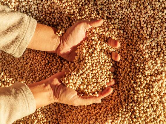 Soybean Prices Fall: मौजूदा समय में हो रही बेमौसम बारिश की वजह से सोयाबीन की फसल (Soybean Crop) को नुकसान के बावजूद कीमतों में कमजोरी देखने को मिल रही है. उत्पादन और पिछला बकाया स्टॉक ज्यादा होने की वजह से सोयाबीन की कीमतों में गिरावट (Soybean Price Fall) जारी रहने की आशंका है. जानकारों का कहना है कि आने वाले दिनों में हाजिर बाजार में सोयाबीन का भाव लुढ़ककर 4,500 रुपये प्रति क्विंटल (Soybean Price 2022) के निचले स्तर तक भी पहुंच सकता है. जानकारों ने प्रमुख सोयाबीन उत्पादक राज्यों मध्य प्रदेश और राजस्थान में बेमौसम बारिश के चलते सोयाबीन की करीब 0.34 मिलियन मीट्रिक टन फसल बर्बाद (Soybean Crop Loss) होने का अनुमान लगया है.