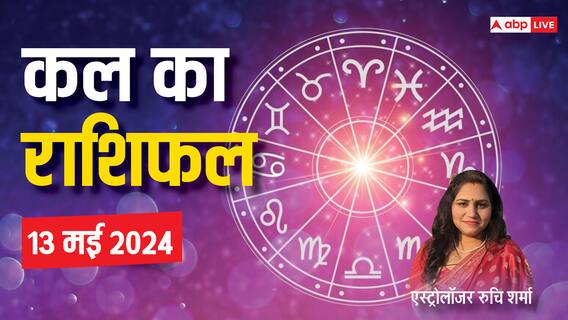 Kal Ka Rashifal: राशिफल के अनुसार कल यानि 13 मई 2024, सोमवार का दिन महत्वपूर्ण है. ग्रहों की चाल के मुताबिक कल के दिन मेष राशि वालों को व्यापार में उन्नति के अवसर प्राप्त कर सकते हैं, कल मिथुन राशि वालों का स्वास्थ्य सामान्य रहेगा, परंतु आप तनाव करने से बचे. सभी राशि के लोगों के लिए सोमवार का दिन कैसा रहेगा? आइए जानते हैं सभी 12 राशियों का कल का राशिफल (Horoscope Tomorrow)-