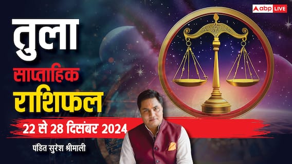 Libra Weekly Horoscope 22 to 28 December 2024: ग्रह-नक्षत्रों की चाल के आधार पर यह सप्ताह यानी 22 से 28 दिसंबर 2024 तक का समय कई राशियों के लिए महत्वपूर्ण रहने वाला है. साप्ताहिक राशिफल में जानेंगे तुला राशि वालों के लिए नए सप्ताह के आने वाले 7 दिन कैसे रहेंगे.