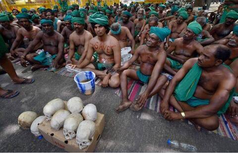 70 वर्षीय प्रतिष्ठित वकील और मानवाधिकार कार्यकर्ता पी. आयकन्नु की अगुवाई में तमिलनाडु से 14 मार्च, 2017 की शाम दिल्ली मार्च करने पहुंचे 114 किसानों ने हर जतन करके देखा. इनमें से कुछ लोग बीमार होकर लौट भी गए थे लेकिन केंद्र सरकार समर्थकों ने सोशल मीडिया पर उनकी कालिख भरी छवि पोती कि वे किसी की शह पर फैंसी ड्रेसों में हलुआ-पूरी उड़ाने जंतर-मंतर पर जमा हुए अघोरी थे. ये अपने साथ कुछ उन किसानों की मुंडमालाएं भी लाए थे जिन्होंने राज्य में 140 साल के बाद पड़े सबसे भयानक सूखे के क़हर में प्राण गवां दिए. इनमें 25 साल का किसान था और 75 का भी. इनमें दामोदरन भी था जो मृतक पत्नी की खोपड़ी को गले में पहने रहता था.