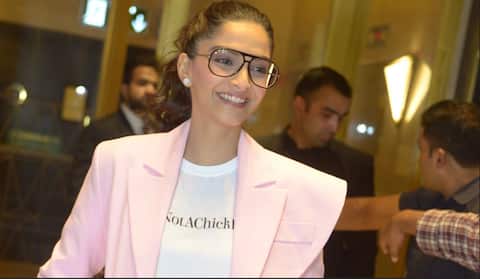 दिल्ली में प्रमोशन के दौरान सोनम अलग ही अंदाज में नजर आईं. अक्सर अपनी बोल्ड ड्रेसेज़ से सबको चौंकाने वाली सोनम इस दौरान ट्राउजर टी-शर्ट और बेबी पिंक कलर की जैकेट पहने नजर आईं. (तस्वीर: मानव मंगलानी)