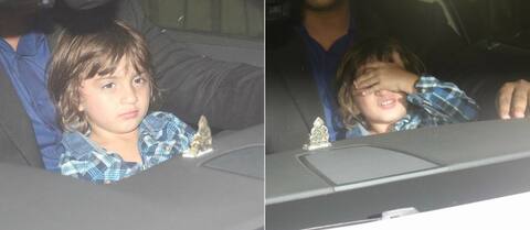 कैमरे की फ्लैश से परेशान होकर अबराम अपना चेहरा छिपाते हुए नजर आए. (तस्वीर: मानव मंगलानी)