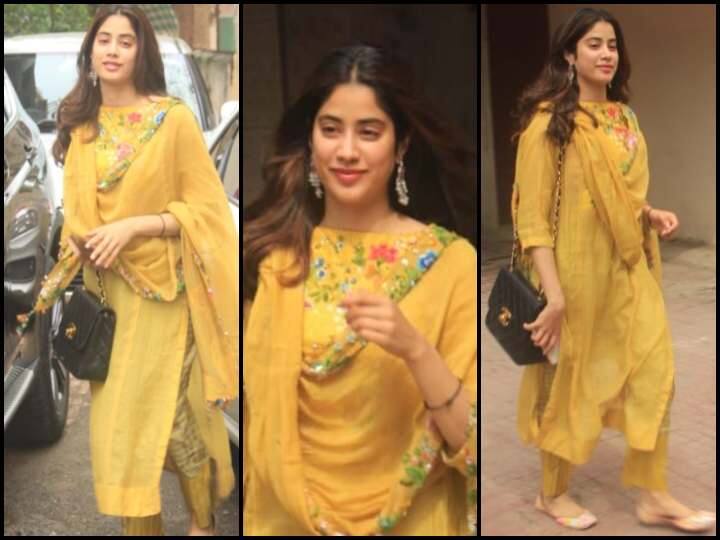 IN PICS: प्राइस टैग के साथ पीले रंग के सूट में नजर आईं जाह्नवी कपूर, फैंस ने दिए ऐसे रिएक्शन