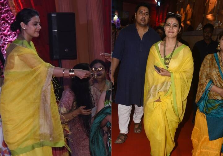 दुर्गा पूजा पंडाल में पहुंचीं काजोल ने सबको दी आरती, बेहद खूबसूरत अंदाज में दिखीं
