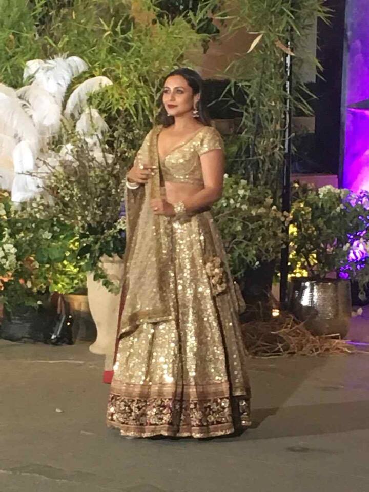 सोनम के रिशेप्शन में शरीक होने के लिए बॉलीवुड अभिनेत्री रानी मुखर्जी मुंबई के उस होटल में पहुंच चुकी हैं जहां सोनम का रिसेप्शन हो रहा है. इस मौके पर रानी गोल्डन कलर के लहंगे में नजर आईं.