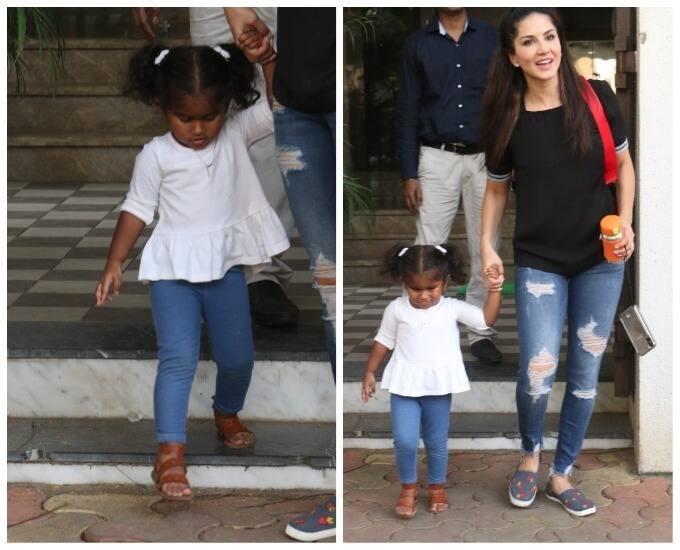 काफी समय बाद बेटी निशा के साथ जुहू में नज़र आईं सनी लियोनी, देखें तस्वीरें