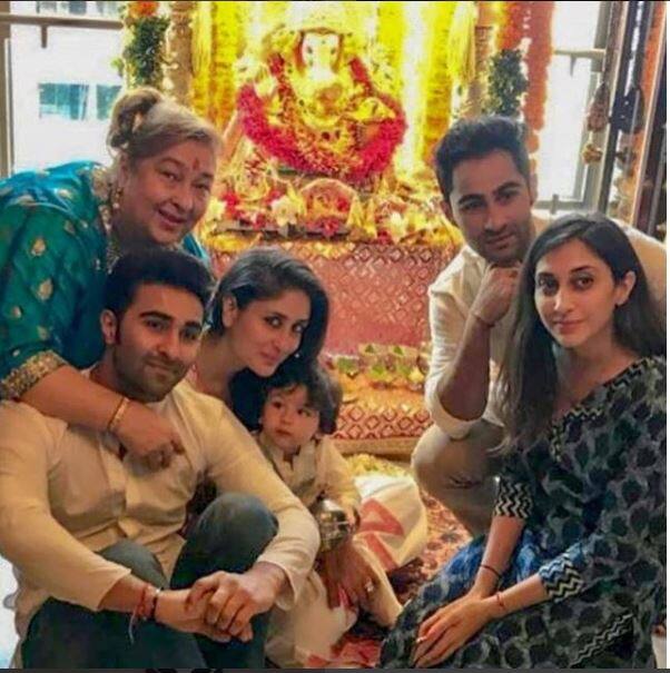 दरअसल करीना कपूर की बुआ रीमा जैन के घर पर गणपति पूजा का आयोजन हुआ. इसी में करीना बेटे तैमूर पहुंचीं.