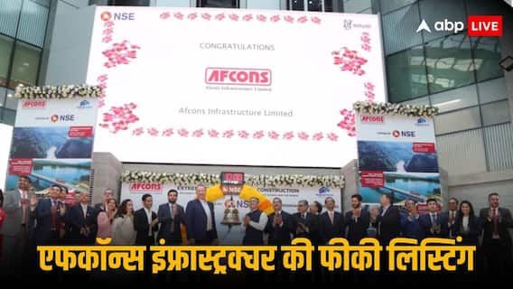 Afcons Infrastructure Share Listing: एफकॉन्स इंफ्रास्ट्रक्चर के शेयर आज बीएसई और एनएसई पर निराशाजनक लिस्टिंग दिखा पाए हैं. एफकॉन्स इंफ्रास्ट्रक्चर के स्टॉक आज 426 रुपये प्रति शेयर पर लिस्ट हुए हैं और ये इश्यू प्राइस से 8 फीसदी के डिस्काउंट पर लिस्टिंग है. इसका अर्थ है कि आईपीओ में रखे गए प्राइस बैंड 463 रुपये प्रति शेयर से 8 फीसदी नीचे के लेवल पर शेयरों की लिस्टिंग हुई है.