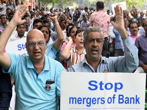केंद्र की नरेंद्र मोदी सरकार ने देश के 10 बड़े सरकारी बैंकों को मिलाकर चार बड़े बैंक बनाने के अपने फैसले को मंजूरी दे है और इसके विरोध में ही ये दो बैंक यूनियनें हड़ताल पर जाने का फैसला कर चुकी हैं. पिछले साल अगस्त में केंद्र सरकार ने दस सरकारी क्षेत्र के बैंकों का चार बैंकों में मर्जर करने का बड़ा फैसला लिया था लेकिन इस फैसले को कैबिनेट की मंजूरी पिछले हफ्ते ही दी गई है. इस साल एक अप्रैल से ये फैसला लागू हो जाएगा.