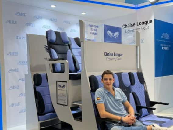 Double-Decker seats in Flight: 23 साल के एक स्टूडेंट ने ऐसा कॉन्सेप्ट पेश किया है, जो हवाई उड़ान के मामले में गेमचेंजर साबित हो सकता है. इसे दो साल पहले 2021 में अलेजांद्रो नुनेज विसेंट नामक छात्र ने अपने कॉलेज प्रोजेक्ट के तहत डबल डेकर सीट वाली एयरक्रॉफ्ट का कॉन्सेप्ट पेश किया था, जिसपर लगातार दो साल तक काम किया और इसे अब जर्मनी के हैम्बर्ग में एयरक्राफ्ट इंटिरियर्स एक्सपो (AIX) में पेश किया गया है.