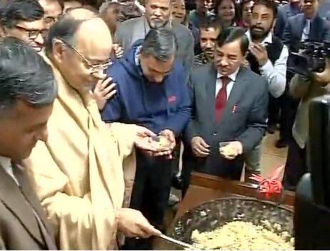यह पारंपरिक हलवा सेरेमनी पिछले साल 19 फरवरी को हुई थी और अरुण जेटली ने 29 फरवरी को बजट पेश किया था. जैसा कि आप जानते हैं कि इस बार बजट 1 फरवरी को पेश होगा और इसी कारण ये सेरेमनी 19 जनवरी यानी आज की गई है. एनडीए सरकार द्वारा इस साल पेश होने वाला बजट तीसरा बजट होगा जो 1 फरवरी को संसद में पेश किया जाएगा. वित्त मंत्रालय के नियमों के मुताबिक बजट का प्रारूप तैयार होने के बाद इसे छपाई के लिए उसे भेजा जाने से पहले यह हलवा बनाने की रस्म पूरी की जाती है. हर साल इसे बजट पेश होने से करीब 10 दिन पहले अंजाम दिया जाता है जिसमें वित्त मंत्री खुद अपने हाथों से वित्त अधिकारियों, कर्माचारियों को हलवा देने का आरंभ करते हैं.