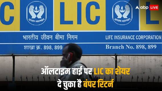LIC Stock Price at Lifetime High: एलआईसी या लाइफ इंश्योरेंस कॉरपोरेशन ऑफ इंडिया के निवेशकों की आज चांदी ही चांदी हो रही है. एलआईसी के शेयर ऑलटाइम हाई पर आ चुके हैं और एलआईसी के स्टॉक्स में पहली बार 1000 रुपये से पार के लेवल देखे जा रहे हैं. आज एलआईसी के शेयर में 1028 रुपये का लाइफटाइम हाई या ऑलटाइम हाई लेवल देखा जा चुका है. शेयर में इस समय भी शानदार उछाल देखा जा रहा है और ये दोपहर 1 बजकर 58 मिनट पर 67.55 रुपये या 7.14 फीसदी की उछाल के साथ 1,013 रुपये प्रति शेयर पर कारोबार कर रहा है.
