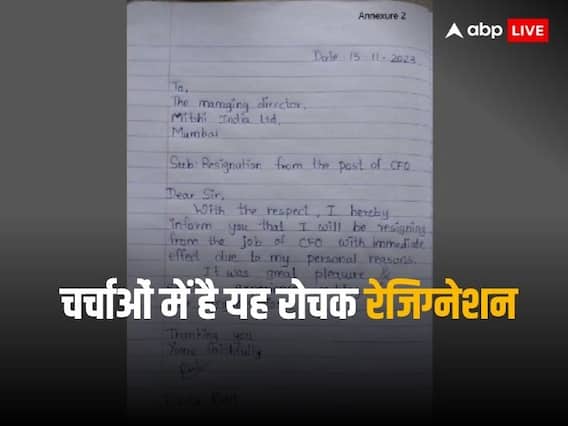 Interesting Resignation: नौकरी से इस्तीफा देना कोई बड़ी बात नहीं है. मगर, कभी-कभी लोग इस्तीफा देने ऐसे तरीकों का इस्तेमाल करते हैं कि यह सामान्य सी घटना चर्चा का विषय बन जाती है. कुछ ऐसा ही हुआ मिताशी इंडिया कंपनी के साथ. उनके सीएफओ ने स्कूल की कॉपी पर अपने हाथ से लिखकर इस्तीफा भेज दिया. कंपनी ने शेयर बाजार को भेजी जानकारी में इस इस्तीफे की कॉपी भी लगा दी. इसके बाद लोग इस अनूठे इस्तीफे पर बात करने लगे हैं. आइए इस कंपनी और उसके सीएफओ के बारे में जान लेते हैं.