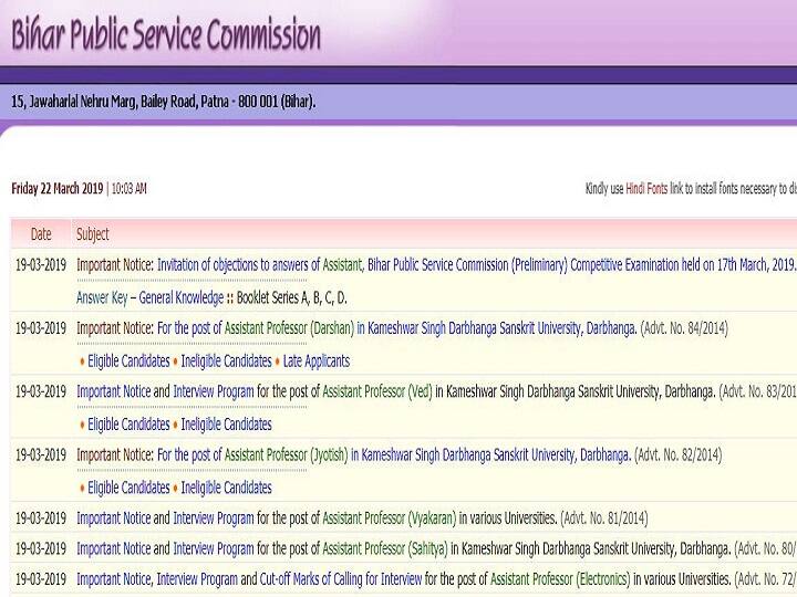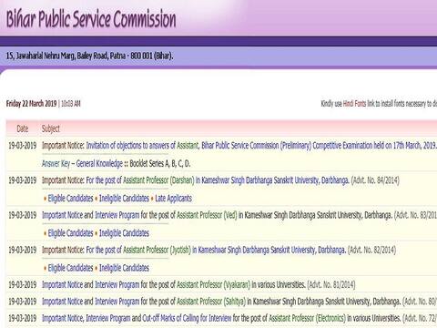 सरकारी नौकरी: बिहार पब्लिक सर्विस कमीशन ने असिस्टेंट पदों पर बहाली के लिए 17 मार्च को ली गई परीक्षा का आंसर की जारी कर दिया है. किसी कैंडिडेट को अगर किन्हीं प्रश्नों के उत्तर पर संदेह है तो वह इसकी शिकायत कमीशन से कर सकते हैं. इसके लिए एक अप्रैल तक की समय सीमा बीपीएससी ने कैंडिडेट को दी है.