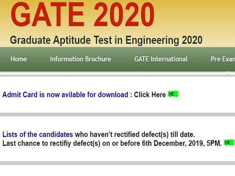 GATE exam 2020 Admit card: गेट 2019 का एडमिट कार्ड आज जारी किया जायेगा. जिन उम्मीदवारों ने गेट -2019 के लिए आवेदन किया था वो अपना एडमिट कार्ड ऑफिशियल वेबसाइट से डाउनलोड कर सकेंगें. गेट 2019 की परीक्षा 1, 2, 8 और 9 फरवरी 2020 को आयोजित की जानी है. उम्मीदवार इस बात का ध्यान अवश्य रखें कि उन्हें उसी परीक्षा केंद्र पर पहुंचना है जो उनके एडमिट कार्ड पर लिखा है.