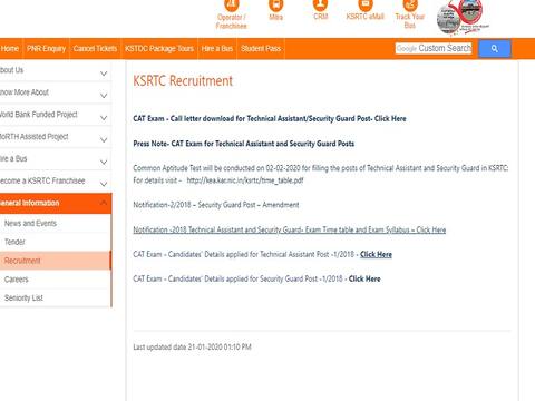 भविष्य की आवश्यकता के लिए उसी की हार्ड कॉपी अपने पास रखें. केएसआरटीसी संगठन में 726 तकनीकी सहायक और सुरक्षा गार्ड पदों को भरेगा. KSRTC तकनीकी सहायक के लिए आवेदन जमा करने की अंतिम तिथि 28 अप्रैल 2018 थी और सुरक्षा गार्ड पोस्ट की आखिरी तारीख 16 जुलाई 2018 थी. अधिक संबंधित विवरणों की जांच के लिए उम्मीदवार केएसआरटीसी की आधिकारिक साइट ksrtc.in पर जा सकते हैं.
