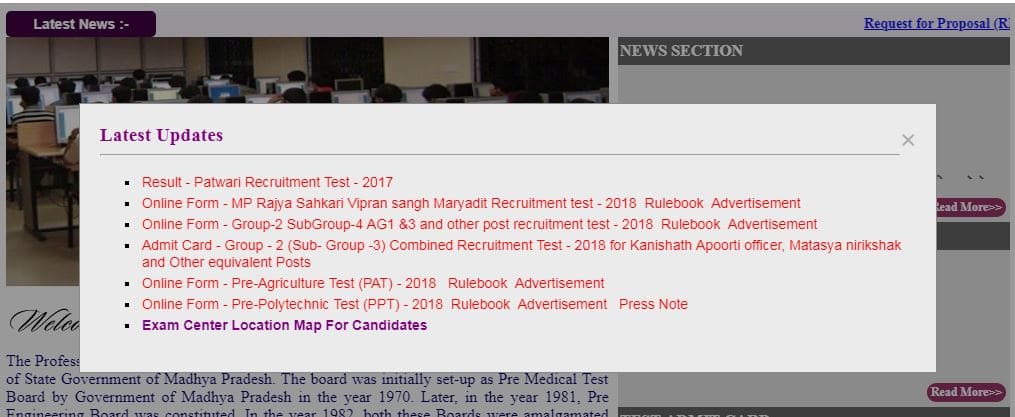 MP PEB Vyapam Patwari 2017: मध्य प्रदेश प्रोफेशनल एग्जामिनेशन बोर्ड (MP PEB) यानि व्यापम ने पटवारी के लिए पिछले साल हुई भर्तियों के रिजल्ट घोषित कर दिए हैं. PEB ने पटवारी की भर्ती के रिजल्ट को आधिकारिक वेबसाइट पर जारी किए गए हैं. हालांकि नतीजे जारी करने के लिए PEB ने अपनी आधिकारिक वेबसाइट को बदल दिया है.