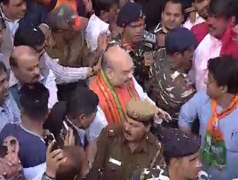 - बीजेपी जीत के बाद अमित शाह के ऊपर बीजेपी मुख्यालय पर की गई फूलों की बारिश.