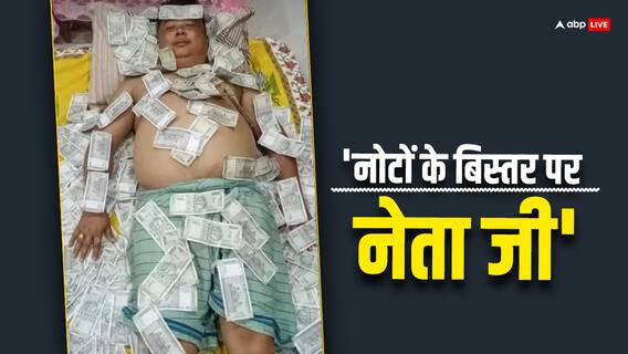तस्वीर में यूपीपीएल नेता का शरीर नोटों से ढका दिखा