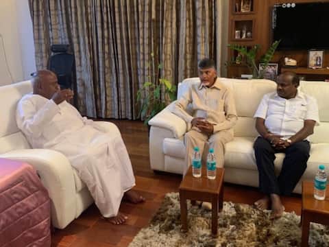 बेंगलुरु: आंध्र प्रदेश के मुख्यमंत्री और टीडीपी प्रमुख चंद्रबाबू नायडू ने ईवीएम के साथ कथित छेड़छाड़ के मुद्दे पर विपक्षी पार्टियों को एकजुट करने के मकसद से पूर्व प्रधानमंत्री और जेडीएस के अध्यक्ष एचडी देवगौड़ा से मुलाकात की. इस मुलाकात के दौरान कर्नाटक के सीएम एचडी कुमारस्वामी भी मौजूद रहे. नायडू दिल्ली में ईवीएम के मुद्दे पर विपक्षी पार्टियों के साथ बैठक के बाद देर रात यहां पहुंचे थे और उन्होंने देवगौड़ा से करीब एक घंटे बात की. नायडू ने कहा कि 23 पार्टियां इस मुद्दे को उठा रही हैं और पारदर्शिता एवं जवाबदेही की मांग कर रही हैं.