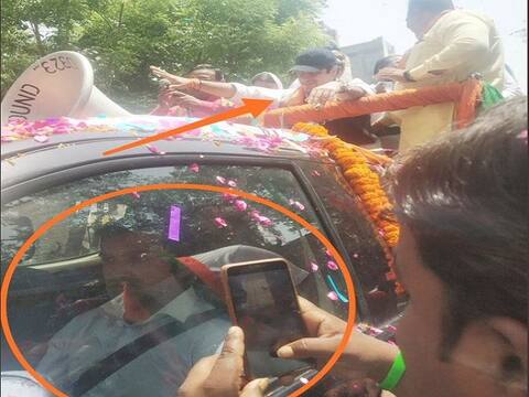 उल्लेखनीय है कि गंभीर की कुछ तस्वीरें सोशल मीडिया पर चस्पा की गयी हैं. इनमें गंभीर प्रचार वाहन में अंदर बैठे दिख रहे हैं जबकि उनका हमशक्ल वाहन के ऊपर बैठा है. उसे स्थानीय लोग गंभीर समझ कर मालायें पहना रहे हैं.