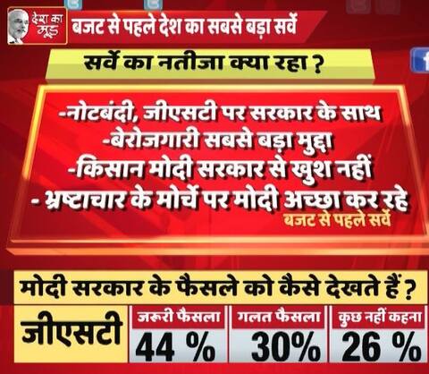 सर्वे के मुताबिक अर्थव्यवस्था के लिए नोटबंदी को 48% लोग अच्छा बता रहे हैं जबकि जीएसटी को 57 % लोग परेशान करने वाला फैसला मानते हैं.