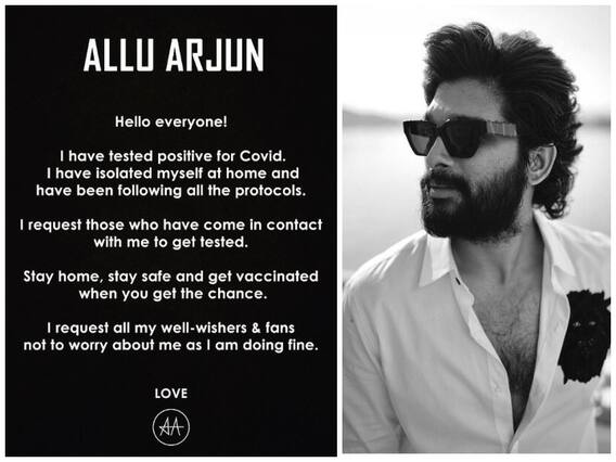 अल्लू अर्जुन ने सोशल मीडिया पर एक पोस्ट में लिखा है, ''मैं कोरोना पॉजिटिव गया हूं. मैंने घर में ही खुद को आइसोलेट कर लिया है और सभी प्रोटोकॉल फॉलो कर रहा हूं.''