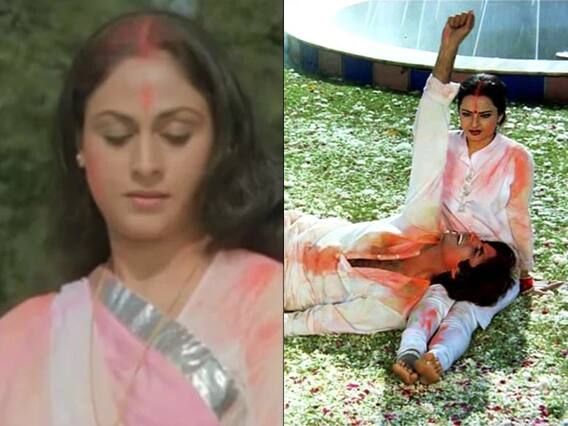 यह किस्सा है यश चोपड़ा की फिल्म 'सिलसिला' से जुड़ा. यह एक ऐसी फिल्म थी, जिसमें अमिताभ बच्चन, जया बच्चन, रेखा और संजीव कुमार ने अहम भूमिका निभाई थी. इस रोमांटिक फिल्म में अमिताभ बच्चन, जया और रेखा की असल प्रेम कहानी की झलक देखने को मिली थी. फिल्म को तो दर्शकों ने पसंद किया था, लेकिन इससे भी ज्यादा मशहूर हुआ था फिल्म का गाना 'रंग बरसे'. वायरल हो रहा वीडियो इसी गाने का है. आप देख सकते हैं, गाने में एक सीन दिखाया गया था जिसमें चारों कलाकार एक दूसरे के साथ रंग खेलते नजर आते हैं. इस गाने के दौरान अमिताभ कई बार रेखा को रंग लगाते हैं, उन्हें सिर से डुपट्टा ओढ़ाते हैं और आखिर में उनके सिर पर अपना हाथ रखते हैं. गाने में इनका रोमांस दूर से ही जया देख रही होती हैं.