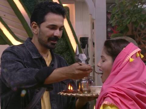 इसके बाद रुबीना चांद और पति अभिनव की पूजा करती हैं. वह चांद को देखती हैं और फिर अभिनव को देखती हैं. इस दौरान दोनों बहुत ही खुश और एक्साइटेड नजर आते हैं. अभिनव अपनी पत्नी से कहते हैं,"कभी सोचा था करवा चौथ बिग बॉस के घर में करेंगे?" रुबीना बाद में अभिनव के पैर छूती है और अभिनव रुबीना को पानी पिलाकर उनका व्रत पूरा करते हैं. इसके बाद दोनों एक दूसरे गले मिलते हैं और किस करते हैं.