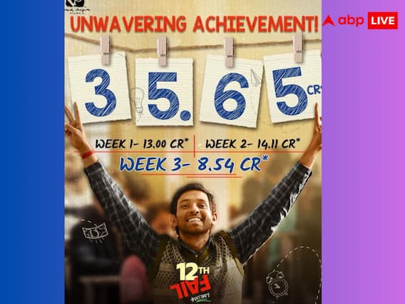 कम बजट में बनी यह फिल्म अब तक करोड़ों में कमाई कर रही है. बता दें कि '12वीं फेल' 27 अक्टूबर तो कंगना रनौत की 'तेजस' के साथ थिएटर्स में रिलीज हुई थी. विधु विनोद चोपड़ा के डायरेक्शन में बनी फिल्म '12वीं फेल' अनुराग पाठक की किताब ट्वेल्थ फेल पर बेस्ड है. यह आईपीएस मनोज कुमार शर्मा की स्ट्रगल लाइफ पर बेस्ड है.