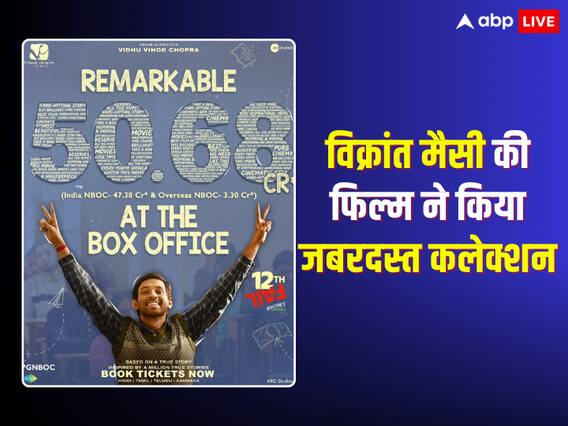 विक्रांत मैसी की फिल्म का टोटल कलेक्शन अब 50.68 करोड़ हो गया है. जो एक कंटेंट ड्रिवेन सिनेमा के लिए एक शानदार सफलता का संकेत है. विक्रांत मैसी और मेधा शंकर स्टारर ये रियल लाइफ स्टोरी न सिर्फ लोगों के दिलों पर राज कर रही है, बल्कि इसे बॉक्स ऑफिस पर भी जोरदार जीत हासिल हुई है.