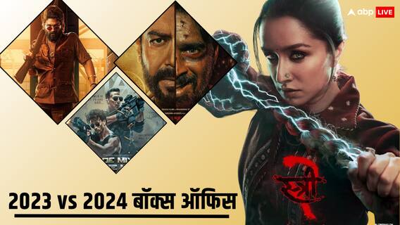 2024 vs 2023 Box Office Report: साल 2024 में सिनेमाघरों में अजय देवगन से लेकर अक्षय कुमार और श्रद्धा कपूर तक की फिल्में रिलीज हुईं. लेकिन इसके बावजूद बॉलीवुड के लिए ये साल कुछ खास नहीं रहा. 'स्त्री 2' और 'मुंज्या' जैसी फिल्मों के साथ ये साल हॉरर-कॉमेडी के नाम हुआ. लेकिन 'पुष्पा 2' जैसी फिल्म का हिंदी कलेक्शन भी बॉलीवुड की साख को मजबूत नहीं कर पाया.