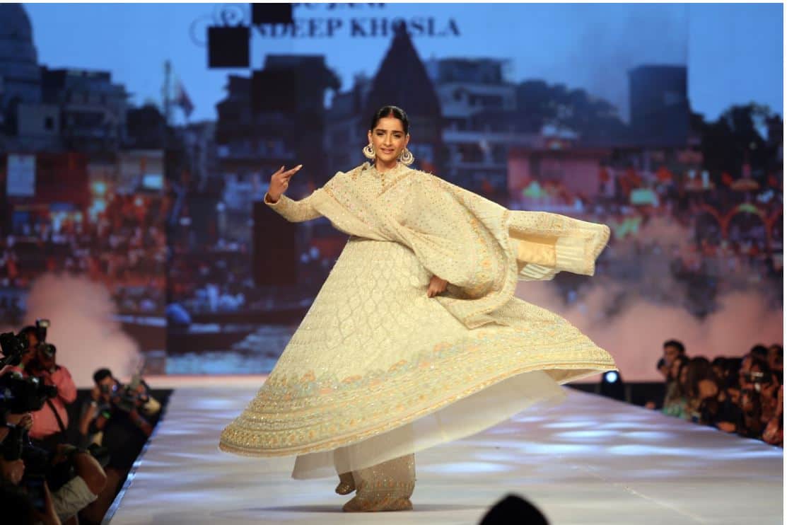 यहां रैंप पर वॉक करने के साथ-साथ डांस कर सोनम ने लोगों का मनमोह लिया. सोनम ने 'घर मोरे परदेसिया' पर डांस किया जो कलंक फिल्म का है और ये हाल में रिलीज किया गया है.