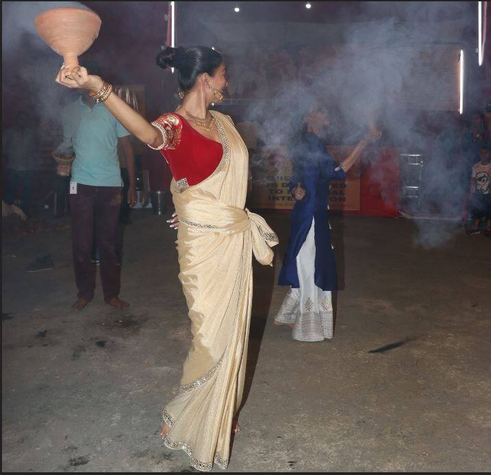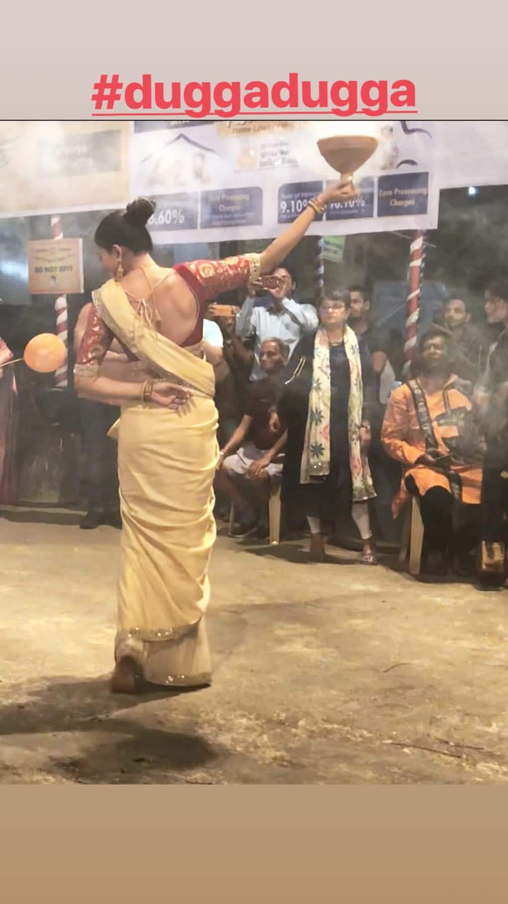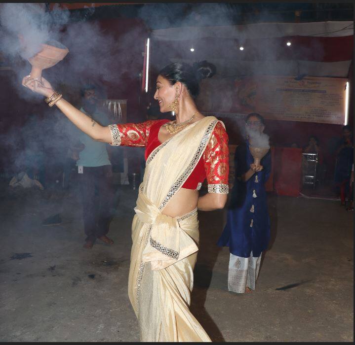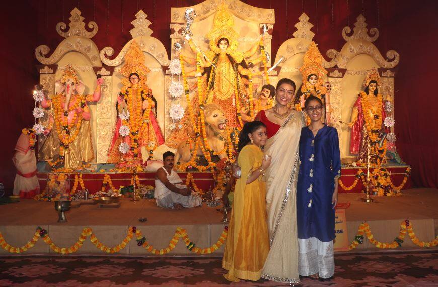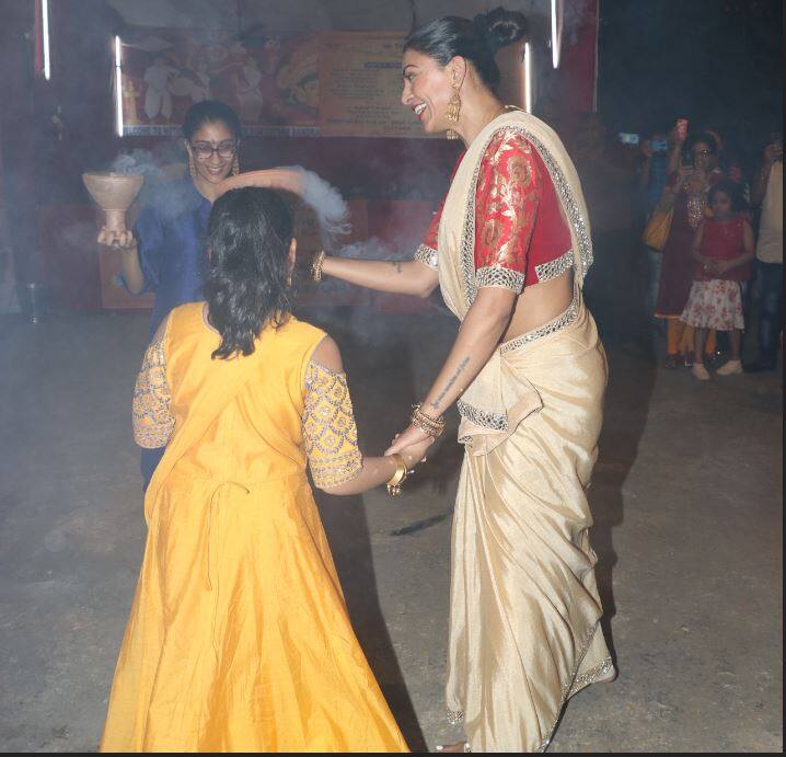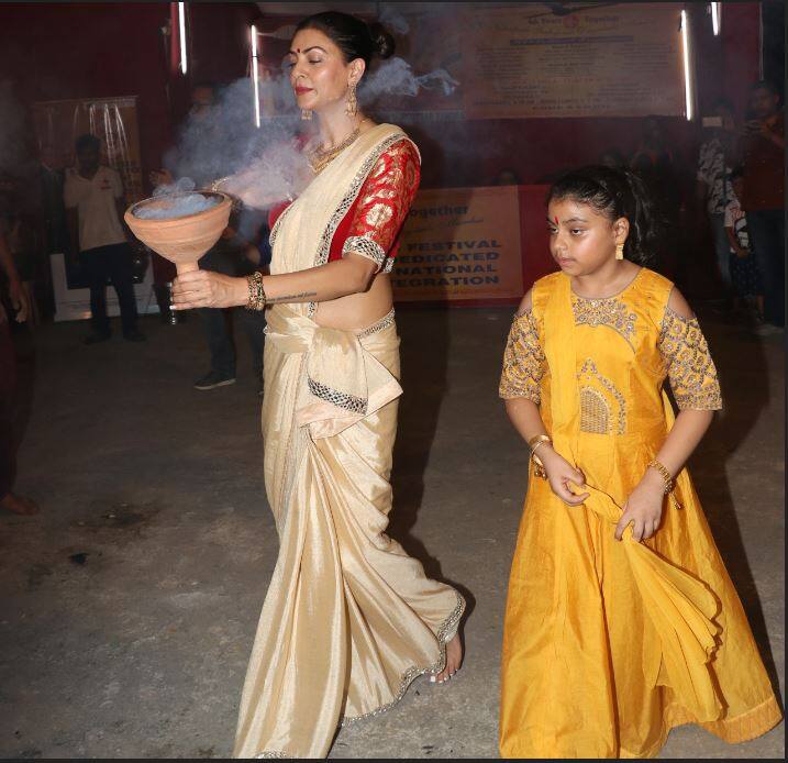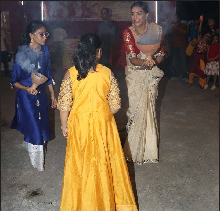 नवरात्रि के मौके पर हर साल सुष्मिता इसी तरह जश्न के रंग में रंगी नज़र आती हैं, लेकिन इस साल उन्होंने पांडाल में अपनी बेटियों के साथ धुनुची डांस भी किया. इस पारंपरिक नृत्य के दौरान सुष्मिता सेन बेहद खुश नज़र आईं.