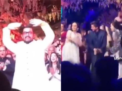आमिर के साथ साथ शाहरुख खान ने भी आकाश श्लोका के प्री वेडिंग बैश में खूब मस्ती की. किंग खान ने भी पूरे अंबानी परिवार के साथ डांस किया. इस दौरान सभी 'दिल धड़कने दो' के मशहूर गाने गल्लां गूड़ियां गाने पर थिरकते दिखे. इस दौरान स्टेज पर मुकेश अंबानी, नीता अंबानी, शाहरुख खान, आमिर खान, आमिर की पत्नी किरण राव, करण जौहर, आकाश अंबानी, श्लोका मेहता डांस करते नजर आए.