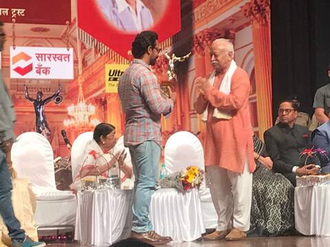 मुंबई: दीनानाथ मंगेशकर की 75वीं पुण्यतिथि पर मुंबई में आयोजित कार्यक्रम में आरएसएस प्रमुख मोहन भागवत ने दिया अभिनेता आमिर खान को दीनानाथ मंगेशकर अवॉर्ड, डेढ़ साल पहले असहिष्णुता के मुद्दे पर दोनों की अलग राय थी.