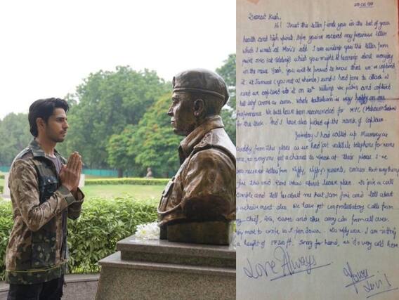 फिल्म 'शेरशाह' में शहीद कैप्टन विक्रम बत्रा का किरदार निभाने वाले अभिनेता आजादी की 75वीं सालगिरह पर दिल्ली के वॉर मेमोरलियल पहुंचे. उन्होंने यहां कैप्टन बत्रा और युद्ध में शहीद देश के योद्धाओं को फिल्म की पूरी टीम की ओर से श्रद्धाजंलि दी. सिद्धार्थ ने इसकी तस्वीर अपने सोशल मीडिया अकाउंट पर शेयर की है. इसके साथ ही उन्होंने कैप्टन विक्रम बत्रा के हाथों लिखी एक चिट्ठी भी शेयर की जिसे उन्होंने अपने प्रियजनों के लिए लिखा था. कैप्टन बत्रा साल 1999 में करगिल युद्ध के दौरान अपने साथियों को बचाते हुए शहीद हो गए थे.
