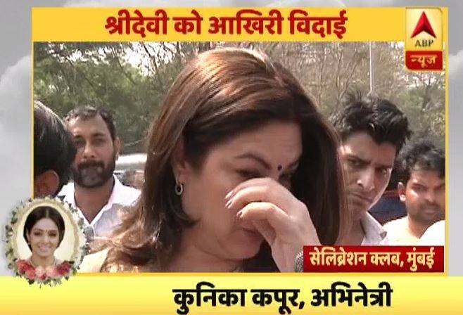 मुंबई: बॉलीवुड की पहली लेडी सुपरस्टार श्रीदेवी का आज दोपहर 3.30 बजे अंतिम संस्कार किया जाएगा. अभी अंतिम दर्शन के लिए उनके शव को अंधेरी के सेलिब्रेशन स्पोर्ट्स क्लब में रखा गया है. क्या खास क्या आम, सभी की आंखें नम हैं. सभी चेहरे उतरे हुए हैं. उन लोगों का और बुरा हाल है जिनका किसी न किसी रुप में श्रीदेवी से ताल्लुक रहा है. उनमें एक नाम है कुनिका कपूर का, जिन्होंने श्रीदेवी के साथ काम किया है.