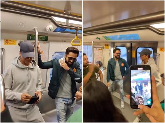 Akshay And Emraan In Mumbai Metro: अक्षय कुमार और इमरान हाशमी जल्द ही फिल्म ‘सेल्फी’ में नजर आएंगे. मोस्ट अवेटेड फिल्म 24 फरवरी को सिनेमाघरों में रिलीज होगी. फिलहाल दोनों एक्टर्स फिल्म के प्रमोशन में बिजी हैं. वहीं गुरुवार को अक्षय और इमरान ‘सेल्फी’ का नए अंदाज में प्रमोशन करते हुए स्पॉट हुए. दरअसल दोनों स्टार्स मुंबई मेट्रो में फैंस से मिले और चलती ट्रेन के अंदर दोनों स्टार्स ने अपने गाने पर जमकर डांस भी किया.