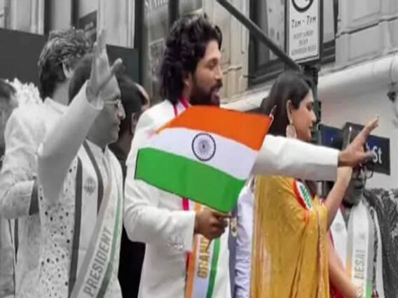 Allu Arjun In Annual India Day parade in New York: फिल्म 'पुष्पा' (Pushpa) की अपार सफलता के बाद से अल्लू अर्जुन (Allu Arjun) पैन इंडिया स्टार बन गए हैं. 'पुष्पा: द राइज' बॉक्स ऑफिस सुपरहिट साबित हुई थी, और दुनियाभर में इस फिल्म ने 300 करोड़ रूपये की कमाई की थी. तेलुगु अभिनेता हाल ही में न्यूयॉर्क में थे, जहां उन्होंने न्यूयॉर्क में इंडिया डे परेड (India Day parade in New York) में भारत का प्रतिनिधित्व किया. अल्लू ने न्यूयॉर्क में हुए इस कार्यक्रम की तस्वीरें साझा कीं, जिसमें भारत की स्वतंत्रता का 75 वर्ष का जश्न मनाया गया.