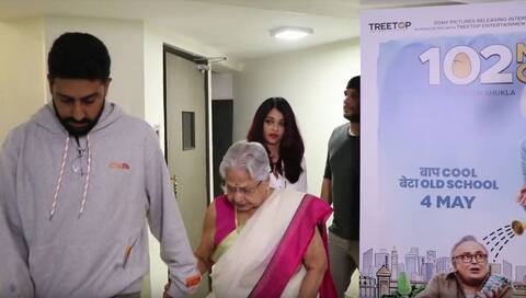 मुंबई: 90 साल की दहलीज पार कर चुकीं अमिताभ बच्चन की सास इंदिरा भादुड़ी उनकी 4 मई को रिलीज होने वाली फिल्म '102 नॉट आउट' की स्पेशल स्क्रीनिंग में पहुंची. नाती अभिषेक बच्चन का हाथ पकड़ कर एक जब वो इस फिल्म की स्क्रीनिंग में पहुंची तो कैमरों को देख कर वह थोड़ी अहज हो गईं. ऐसे में अभिषेक ने उन्हें कैमरे से दूर ही रखने की कोशिश करते नज़र आये. कुछ ही देर में उनकी बहू ऐश्वर्या राय बच्चन भी वहां पहुंच गईं.