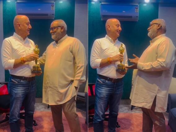 Anupam Kher Video: बॉलीवुड एक्टर अनुपम खेर सोशल मीडिया पर काफी एक्टिव रहते हैं. वह आए दिन फोटोज और वीडियो शेयर करते रहते हैं. इस बार उन्होंने ऑस्कर की ट्रॉफी थामे वीडियो शेयर की है. अनुपम खेर हाल ही में नाटू नाटू के कंपोजर एमएम कीरावनी ने मिले थे. वीडियो में दोनों बात करते हुए नजर आ रहे हैं.