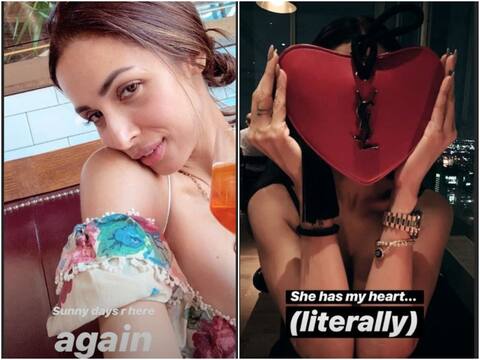 अर्जुन कपूर और मलाइका अरोड़ा फिलहाल न्यूयॉर्क में हैं और साथ में छुट्टियां बिता रहे हैं. इन लम्हों की खूबसूरत तस्वीरों को दोनों ही अपने इंस्टाग्राम स्टोरीज पर शेयर भी कर रहे हैं. अर्जुन द्वारा ली गई एक तस्वीर में डिनर टेबल पर बैठीं मलाइका एक हार्ट शेप लाल रंग के बैग से अपने चेहरे को छिपाए नजर आ रहीं हैं. इस तस्वीर के कैप्शन में अर्जुन ने लिखा है, "वाकई में उसके पास मेरा दिल है."