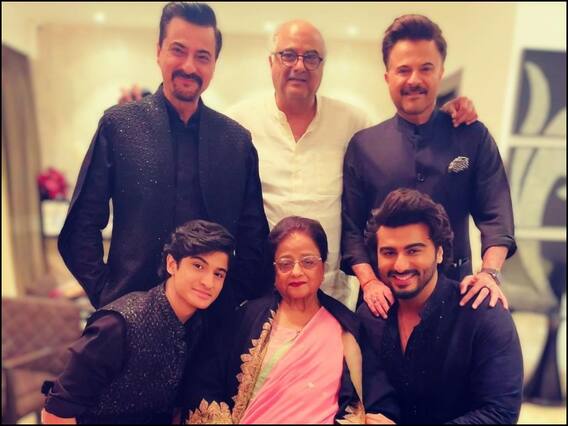 तस्वीर में तीन जनरेशन एक साथतस्वीर में तीनों भाई अनिल कपूर, बोनी कपूर, संजय कपूर के अलावा जहान कपूर व अर्जुन कपूर अपनी दादी के साथ नजर आ रहे हैं. फोटो में परिवार के मेल घर की 'मेन वुमेन' के साथ पोज दे रहे हैं. अर्जुन ने प्यारी सी फोटो के लिए कैप्शन में लिखा है, 'द सन्स एंड ग्रैंडसन्स इन ब्लैक (ऑलमोस्ट) दिवाली के लिए घर की मेन वुमेन के साथ !!!'