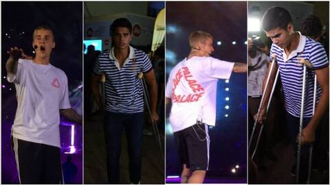 कुछ नामी बॉलीवुड सितारों के साथ उनके बच्चे भी कंसर्ट के दौरान नजर आए. इससे सहज ही अंदाजा लगाया जा सकता है कि बॉलीवुड के स्टार किड्स भी बीबर के दीवाने हैं. क्रिकेट जगत के मास्टर-बलास्टर सचिन तेंदुलकर के बेटे अर्जुन तेंदुलकर भी बीबर का कंसर्ट देखने पहुंचे थे. हालांकि इस दौरान वे बैसाखी का सहारा लेते हुए नजर आए. तस्वीर में साफ दिख रहा है कि अर्जुन तेंदुलकर के पैरों में पट्टी बंधा हुआ था जिस वजह से उन्होंने बैसाखी का सहारा लेना पड़ा.दीवानगी ऐसी कि बीबर के कंसर्ट में बैसाखी के सहारे पहुंचे सचिन के बेटे अर्जुन