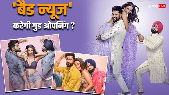 Bad Newz Box Office Collection Day 1: विक्की कौशल की फिल्म 'बैड न्यूज' को लेकर दर्शकों में जबरदस्त क्रेज देखा जा रहा है. फिल्म का ट्रेलर सामने आने के बाद से ही फैंस फिल्म को लेकर एक्साइटेड हो गए थे. अब फिल्म 19 जुलाई को सिनेमाघरों में दस्तक देने के लिए तैयार है. रिलीज से पहले 'बैड न्यूज' की एडवांस बुकिंग भी शुरू हो चुकी है जिसका कलेक्शन बता रहा है कि विक्की कौशल की फिल्म ठीक-ठाक ओपनिंग कर सकती है.