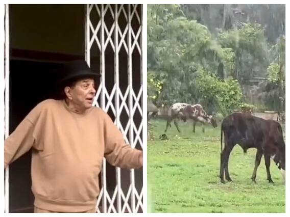 धर्मेंद्र ने अपने इंस्टाग्राम अकाउंट पर एक वीडियो शेयर किया है, जो सोशल मीडिया पर जमकर वायरल हो रहा है. शेयर किये गये वीडियो में आप देख सकते हैं कि फार्म हाउस पर काफी तेज बारिश हो रही है. इस कारण गाय घास चरने बाहर नहीं जा पा रही हैं.