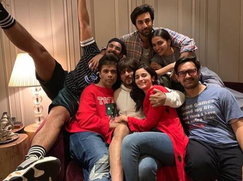 दिलचस्प बात जे हैं कि फ्रेम में तो सब एक साथ हैं लेकिन तस्वीर में सेंटर ऑफ अटेंशन हैं दीपिका-रनबीर की कैमिस्ट्री. तस्वीर में आप देख सकते हैं कि रनबीर कपूर दीपिका और रणवीर के बीच में हैं और दोनों को अपनी बाहों में लिया हुआ है. वहीं आलिया शाहरुख और आमिर के बीच में बैठकर क्यूट पोज दे रही हैं.