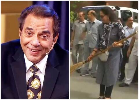 बीते दिनों बीजेपी सांसद और बॉलीवुड एक्ट्रेस हेमा मालिनी की एक वीडियो सोशल मीडिया पर जबरदस्त वायरल हो रहा था जिसमें वो स्वच्छता अभियान का हिस्सा बन वो झाड़ू लगाती नजर आ रही थी. हेमा मालिनी के इस वायरल वीडियो पर अब उनके पति धर्मेंद्र का मजेदार रिएक्शन सामने आया है. एक फैन ने धर्मेंद्र को टैग करते हुए हेमा मालिनी का वीडियो शेयर किया. फैन को जवाब में देते हुए धर्मेंद्र ने ट्वीट कर मजेदार रिएक्शन दिया. धर्मेंद्र ने लिखा, ''हां फिल्म्स में, मुझे भी अनाड़ी लग रही थी. मैं ने मगर बचपन में अपनी मां का हमेशा हाथ बंटाया और मैं झाड़ू लगाने में माहिर था. मुझे सफाई से प्यार है.''