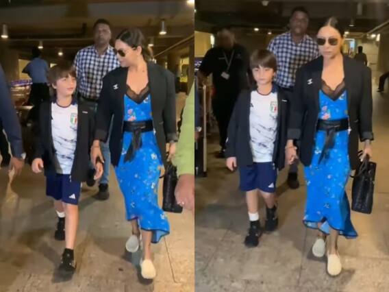 Gauri Khan: बुधवार की सुबह शाहरुख खान (Shah Rukh Khan) और गौरी खान (Gauri khan) अपने बेटे अबराम खान (AbrAM Khan) के साथ मुंबई एयरपोर्ट पर नजर आए. रिपोर्ट्स के मुताबिक, तीनों अभी तक यूएस में थे. एयरपोर्ट पर शाहरुख डेनिम, वाइट टी, ब्लू हुडी में नजर आए तो वहीं गौरी ब्लू कलर की नाइटी जैसी ड्रेस में स्पॉट हुईं. सोशल मीडिया पर वायरल हो रहे वीडियो में सबकी निगाहें गौरी के कपड़ों पर ही टिक गई हैं.